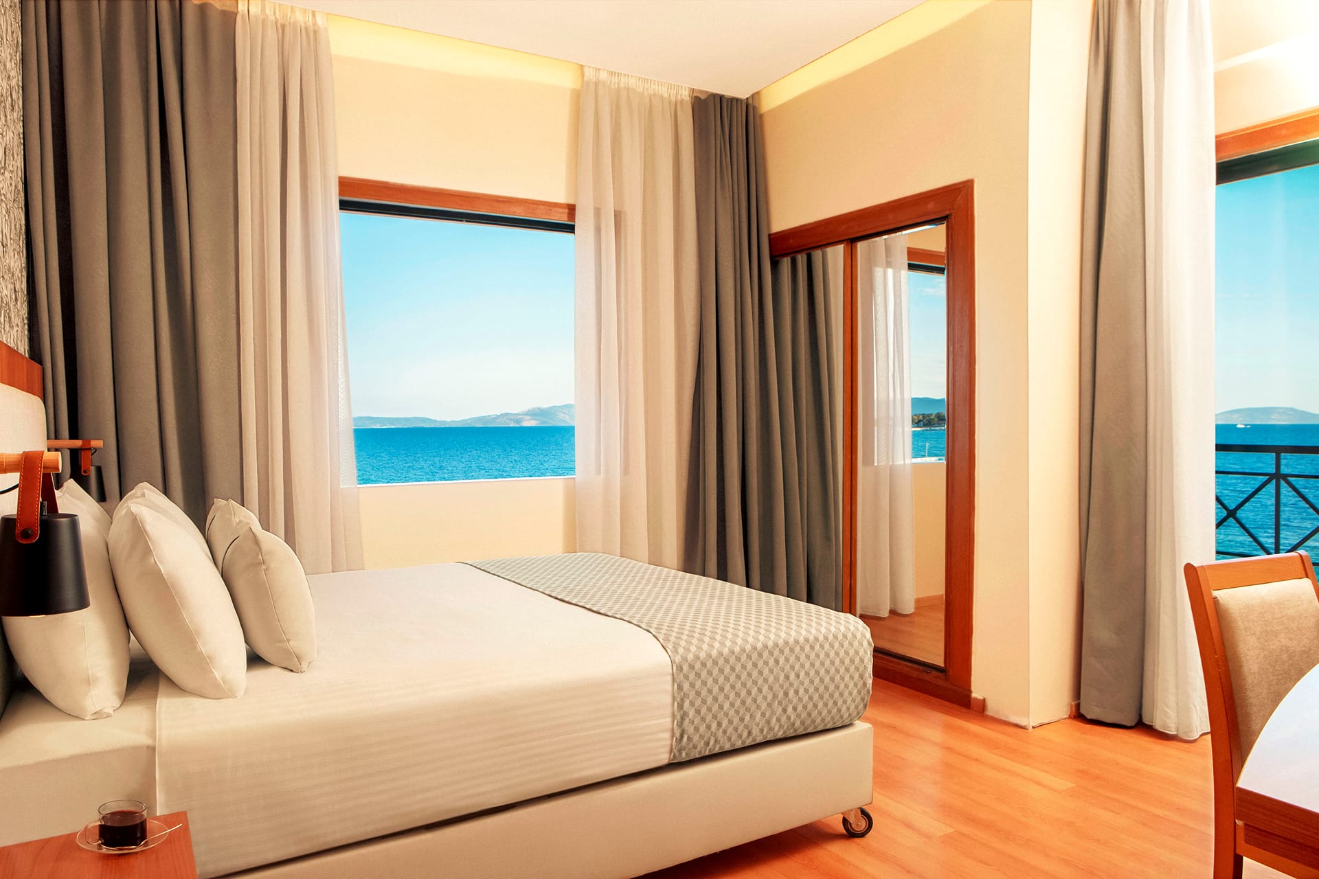 Supreme aesthetics, ample spaces and absolute comfort define the Premium Suite with Side Sea View at Ramada Athens Club Attica Riviera. In a place where relaxation is taken to the next level, guests are welcome to rest at the comfortable bed and furniture. They are free to enjoy the splendid sea view from the private balcony, as well as the fully functional bathroom with the branded bath amenities. The Suite comes with LCD satellite TV and mini fridge, air conditioning and heating, safe deposit box and a plethora of services and facilities on offer. A superb option for couples in love, eager to celebrate romance in a refined environment!